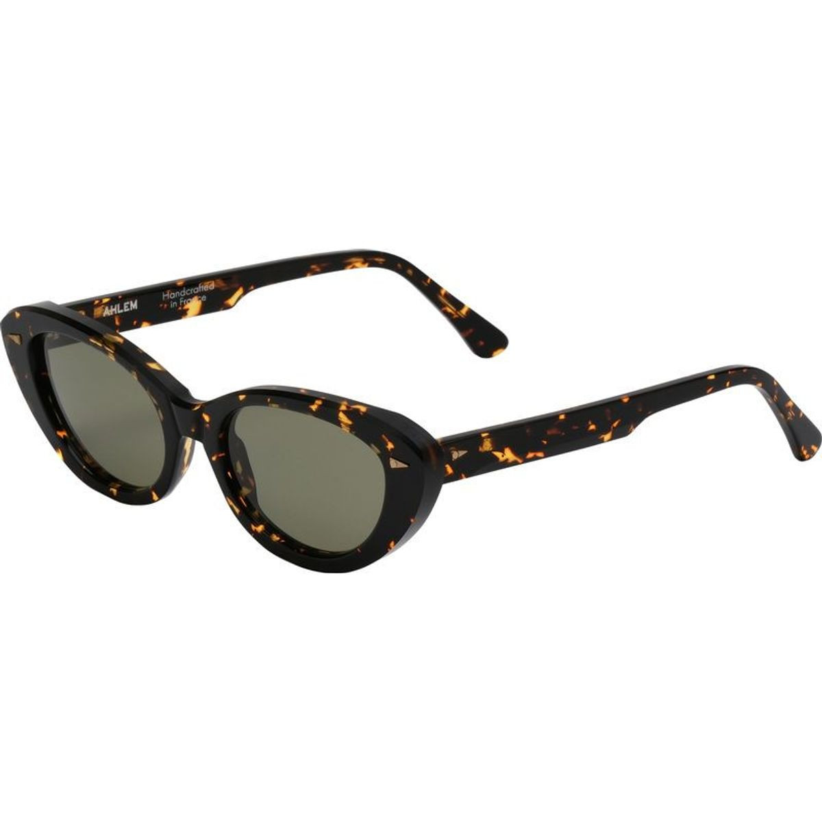 The Prairie sunglasses by Ahlem are more than eyewear—they're a statement of timeless style with a modern, artful twist. Flaunting a laid-back yet sophisticated cat-eye silhouette, this sharp design is softened by bevelled temples and eased edges for an elegant aesthetic. Handcrafted in France from plant-based Italian acetate, this yellow havana frame pairs beautifully with light green lenses, creating a vintage-inspired contrast while ensuring essential UV protection.