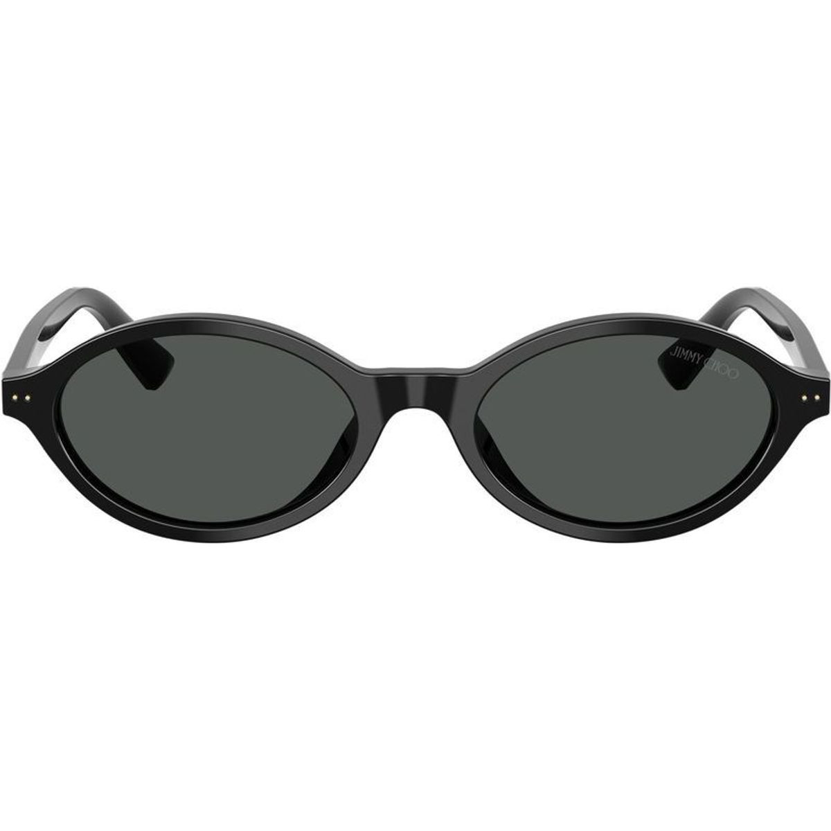 The Jimmy Choo JC5068U sunglasses define understated luxury with a modern edge. This sleek oval silhouette, crafted from refined black acetate, showcases delicate metal pins and an iconic Jimmy Choo logo at the temples, adding a sophisticated flourish. Paired with deep grey lenses, the JC5068U balances timeless elegance with contemporary cool, offering crystal-clear vision, essential UV protection, and a statement-making finish.