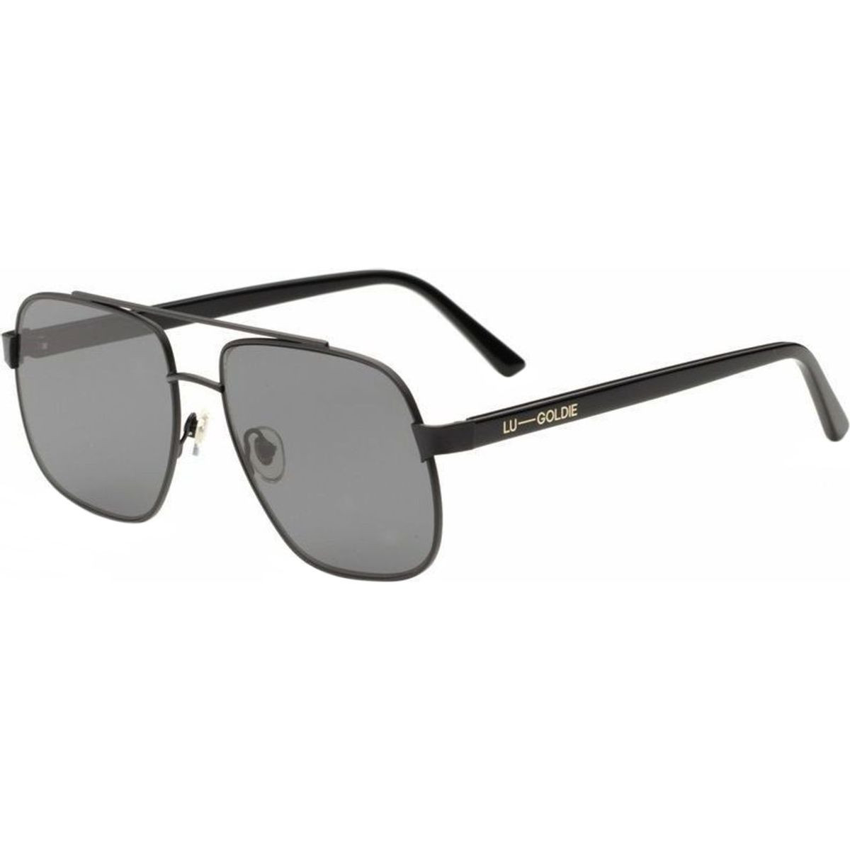 Get set to turn heads with the Lu Goldie Amelia sunglasses in black, featuring a vintage aviator design complete with a double metal nose bridge that exudes the confident aura of a stylish highway patrol officer. Embrace the carefree essence of the open road as these shades are perfect for road trips with windows down and music blasting. Your look radiates undeniable allure, especially when paired with a '70s blouse and a bold attitude.