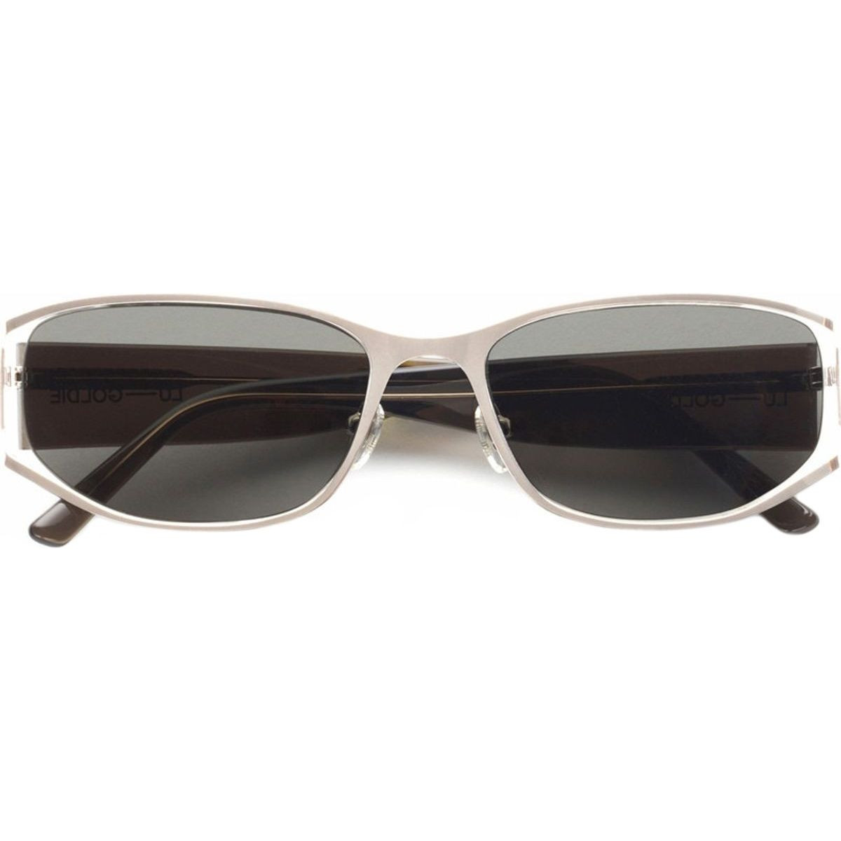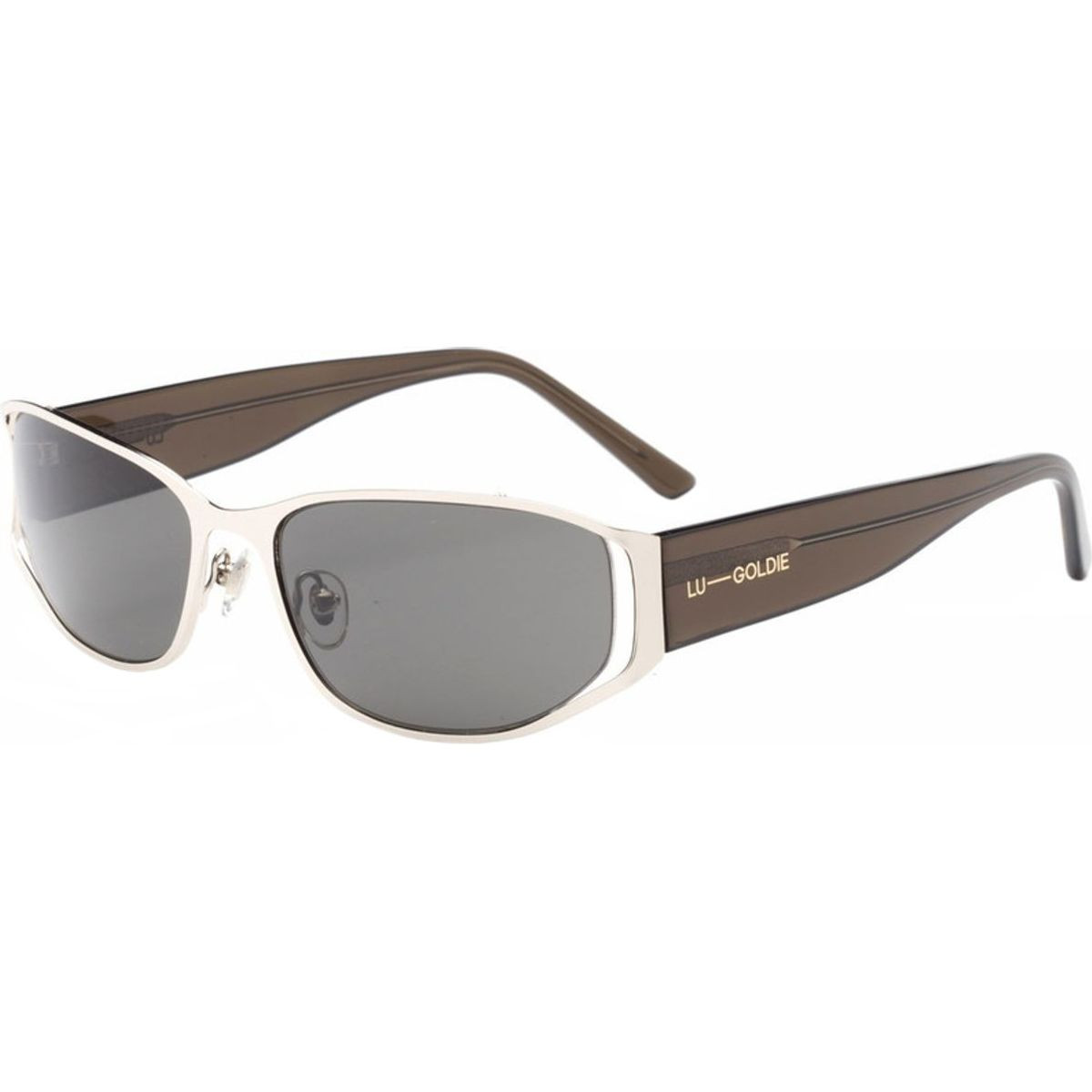 Step into the nostalgia of the 90s with the Lu Goldie Iris sunglasses, featuring a fashionable wrap-around silver acetate frame crafted from sustainable wood and cotton fibers. Complemented by chic grey lenses, these shades are an ideal accessory for your next event, effortlessly paired with low-rise jeans and boat neck tops.